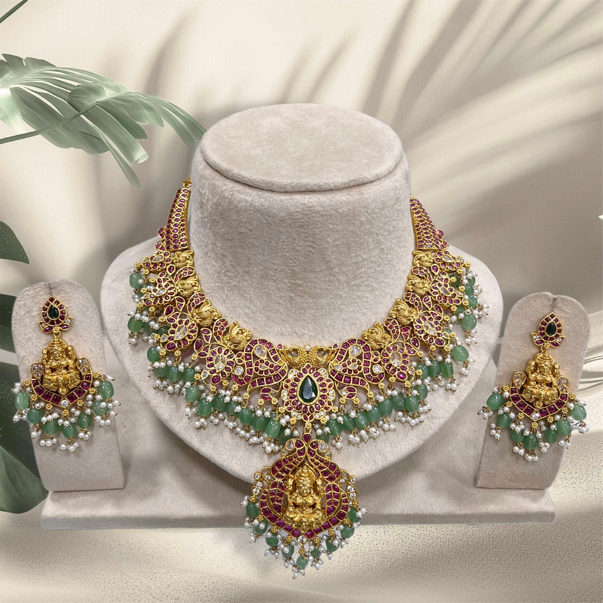 Nakshi Work with Kempu Stones Bridal Neck Set