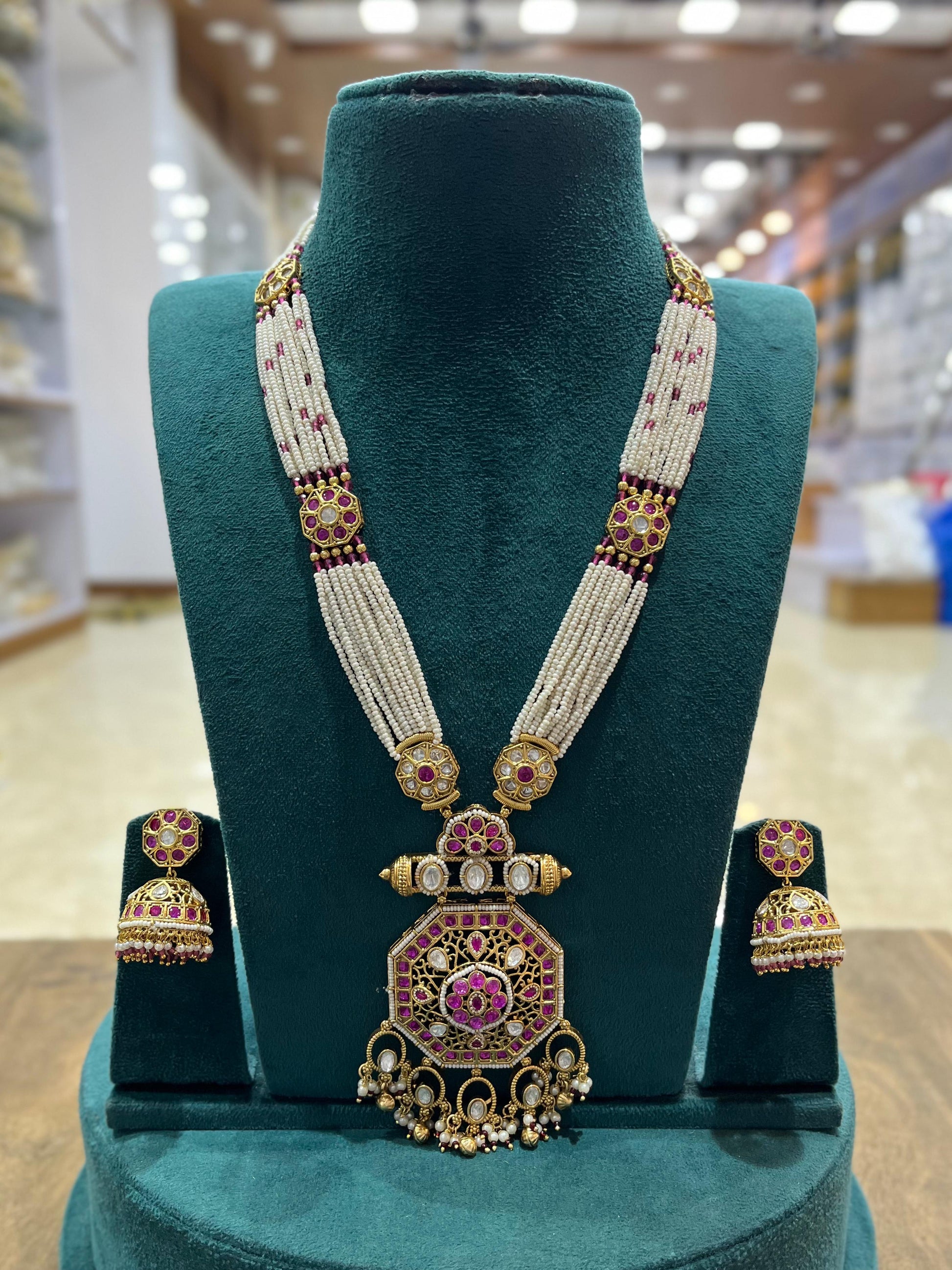 Nakshi Work with Kundan Stones Pendent Beads Mala