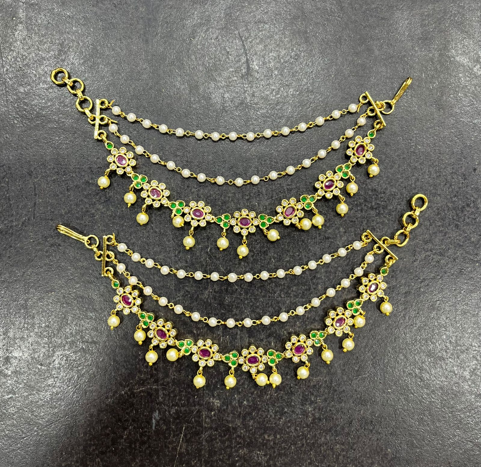 Premium Matt with Kempu Stones Ear Chains