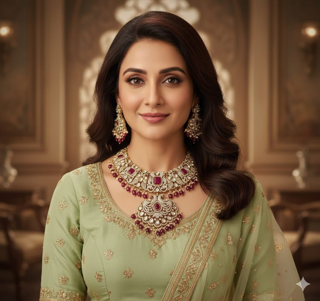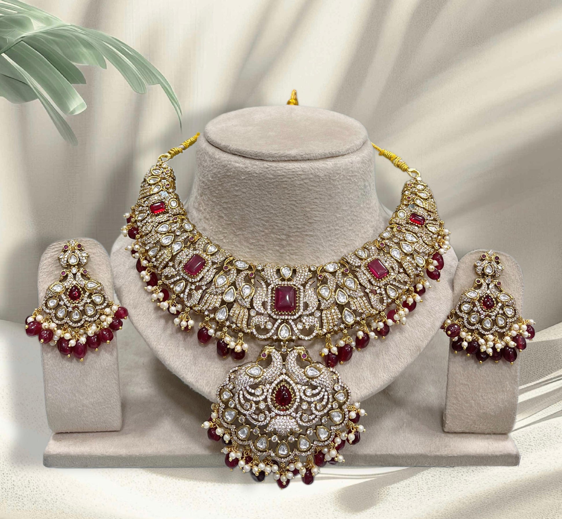 Victorian Polish with AD and Mossianite Stones Bridal Necklace